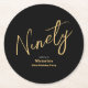 90th Birthday Black Gold Modern Typography Custom Round Paper Coaster
