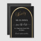 A magnetic Save the Date card for a 90th birthday party. A black background, decorated with a faux gold arch. Personalise and add a date and your name. The text: Ninety and Save the Date is written with a large trendy hand lettered style script.