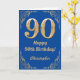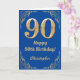 90th Birthday Blue and Gold Glitter Frame Card