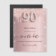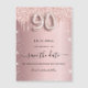A girly and trendy Save the Date card for a 90th birthday party. A blush pink gradient background decorated with rose gold and faux silver glitter drips,sparkles. Personalise and add a date and name/text. The text: Save the Date is written with a large trendy hand lettered style script with swashes. Number 90 with a balloon style font.