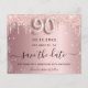 A girly and trendy Save the Date for a 90th birthday party. Blush pink gradient background decorated with rose gold and faux silver glitter drips and dust. Personalise and add a date and name/text. The text: Save the Date is written with a large trendy hand lettered style script with swashes. Number 90 with a balloon style font.
