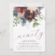 Burgundy & Navy Floral 90th Birthday Party Elegant Script Invitation