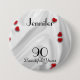 90th Birthday Button / Pin, Small Red Hearts