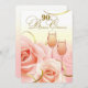 Elegant Pink Roses and Champagne Cups Design personalised 90th Birthday Celebration Flat Invitation Cards. Customise the name, date and all details of your Invitations. Matching cards and gifts available in the Birthday / Birthday Party Invitations Category of our Store.