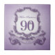 Design in the style of coat of arms in purple colours with large 90th + "BIRTHDAY CELEBRATION" onto a ribbon. Design on ceramic tile with name. You can easily change name (colour, font, size and position) by clicking the customise button. Available with design for 60th,70th, 80th, 95th birthday. Matching birthday invitation, birthday Save the Date, birthday guest book (spiral notebook), favour box, gift tag, party supplies (paper napkin and paper plate), pillow, mug and other birthday gifts for grandmothers.