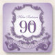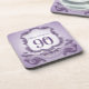 Design in the style of coat of arms in purple colors with large 90th + "BIRTHDAY CELEBRATION" onto a ribbon. Design on square beverage coaster with name. You can easily change name (color, font, size and position) by clicking the customize button. Available with design for 60th,70th, 80th, 95th birthday. Matching birthday invitation, birthday Save the Date, birthday guest book (spiral notebook), favor box, gift tag, party supplies (paper napkin and paper plate), pillow, mug and other birthday gifts for grandmothers.