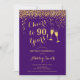 90th Birthday - Cheers To 90 Years Gold Purple Invitation
