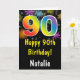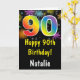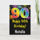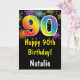 90th Birthday Colourful Rainbow Fireworks Card with personalised name. For further customisation, please click the "Customise it" button and use our design tool to modify this template.