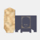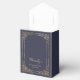 Thank birthday party guests with these elegant favour boxes, featuring an ornate rectangular faux gold frame on a dark navy blue background, with a faux gold foil and satin striped back and flap. Personalise them with the guest of honour's name in gold coloured script, along with the occasion and date in gold copperplate font.