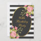 90th Birthday Floral Black White Stripes Gold Foil Invitation