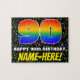 This joyful and colourful birthday themed jigsaw puzzle design features a large number “90” with a multicolored rainbow spectrum inspired gradient pattern, along with the message “HAPPY 90th BIRTHDAY,”, and a custom recipient name. The background features an eye-catching pattern of musical notes and symbols of various colours and sizes. An upbeat, editable birthday puzzle like this might be a fun way to send birthday wishes to somebody who is celebrating their ninetieth birthday. These might be extra special if that person is a composer, a singer, a musician, a songwriter, or otherwise loves music. [~Z0000608]