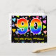 90th Birthday: Fun Hearts Pattern, Rainbow 90 Postcard