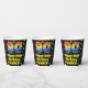 This colourful and joyful birthday paper cup design features a large number “90” with a rainbow spectrum gradient inspired pattern, along with the message “Happy 90th Birthday,”, and a custom name. The background features a vibrant and colourful pattern featuring many star shapes with different colours and sizes. Vibrant, colourful paper cups like this might be fun to use at a birthday celebration being held in celebration of somebody’s ninetieth birthday. [~Z0000540]