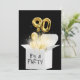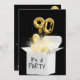 Gold balloons with sparkles and ribbons in white box on black background for 90th birthday party.