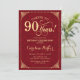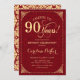 90th Birthday - Gold Red Damask Invitation