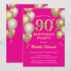 90th Birthday Hot Pink and Gold Glitter Balloons Invitation