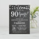 90th Birthday Invitation Chalkboard Background with String Lights. Black and White. 13th 15th 16th 18th 20th 21st 30th 40th 50th 60th 70th 80th 90th 100th, Any age. Adult Birthday. Woman or Man Male Birthday Party. For further customisation, please click the "Customise it" button and use our design tool to modify this template.