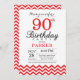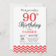 90th Birthday Invitation with Red Chevron. Black and White. Adult Birthday. Man or Women Bday Invite. For further customisation, please click the "Customise it" button and use our design tool to modify this template.