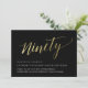 90th Birthday invitations with a modern black and faux gold design. Customise the background colour and the wording to fit your party needs.
