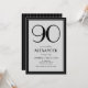 90th Birthday Modern Minimalist Mens Black Grey Invitation