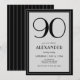 Celebrate turning ninety in sophisticated style with this black and light grey 90th birthday invitation for men or women. Designed with bold typography on a sleek minimalist layout, it blends modern elegance with timeless appeal. The back features clean black and grey stripes for a refined, polished finish. Perfect for an adult milestone birthday, formal dinner, or chic cocktail party, this customisable invite sets the tone for an unforgettable 90th celebration. Personalise with your event details for a stylish, gender-neutral design ideal for modern milestone birthday stationery.