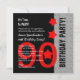 90th Birthday Modern Red Silver Black Funny A04A Invitation