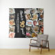 Modern 90th birthday backdrop featuring a stylish black background that can be changed to any colour, a 20 photo collage template of through the years, the saying 'cheers to 90 years', their name, and the date.