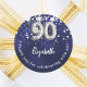 A sticker for a 90th birthday celebration. A navy blue background colour with faux silver stars. The blue colour is uneven. Add your name, text. Text: Thank you for celebrating with me!