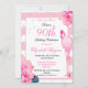 90th Birthday Flamingo and pink flowers design. Florals and Pink stripes