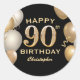 90th Birthday Party Black and Gold Balloons Classic Round Sticker