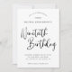 This simple but ever-so-elegant design features modern black and white typography and the words "Ninetieth Birthday" in calligraphy script. The invitations reverse to a subtle, repeating Art Deco pattern in chromatic grey and black. Oozing sophistication and elegance, these 90th birthday invites will set the stylish tone for your celebrations. Order Zazzle invitations with a variety of corner styles and gorgeous paper stocks or, if you're in a hurry, buy the digital download version which is available immediately. Life begins at... 90!