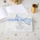 Elegant Ninetieth Birthday Party guest book women. 90th Birthday Party! Beautiful white damask pattern background with a pretty, stylish romantic blue bow and ribbon image. These glamourous, classy guest books are perfect for women and are decorated / printed on the front side only. Women will love this chic modern birthday party guest book. All text is fully customisable to meet your requirements. PLEASE NOTE: All products on Zazzle have flat printed images. Bow and ribbon images purchased from digital-designs-by-elena. If you need any assistance customising your product please contact me through my store and I will be happy to help.