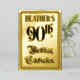 The front of this elaborate ninetieth birthday celebration foil invitation/announcement card design features the message “90th Birthday Celebration” in elegant script-style text. It also features a personalised name. The back features personalised details about the event, such as the date, time, place/venue, and any other information that may be relevant. Opulent, luxurious, editable invitations like these might be used to invite guests to a birthday party/celebration being held in celebration of somebody’s ninetieth birthday. [~Z0000596]
