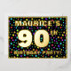 The front of this exciting and joyful ninetieth birthday celebration/party foil invitation card design features a custom name, a large number “90th”, the message “BIRTHDAY PARTY!”, and a border. The background of the front has an upbeat, colourful star shapes pattern. The back features personalised details about the event, such as the date, time, venue, and any other information that may be useful. Customised invitations like these might be a fun way to invite guests/attendees to a birthday gathering being held to celebrate somebody’s 90th birthday. [~Z0000600]