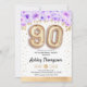 90th birthday party invitation. Elegant design in faux glitter gold with floral accent. Invite card with gold number 90 balloons, script font with confetti. Purple, lavender and white. Perfect for a stylish ninetieth bday celebration. Message me if you need custom age.