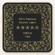 90th Birthday Party Gold/Black Pattern Square Paper Coaster