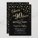 90th Birthday Party Invitation for women or men. Elegant design with faux glitter gold and black. Features script font and confetti. Cheers to 90 Years! Perfect for a stylish milestone bday celebration.