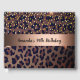 Elegant, glamourous and feminine for a 90th birthday party with brown, golden and black leopard print, decorated with golden confetti. Template for a name and age 90. A faux bronze metallic looking band. Black hand lettered style script, letters.
