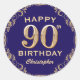 90th Birthday Party Navy Blue and Gold Glitter Classic Round Sticker
