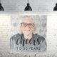 This custom 90th birthday tapestry features the guest of honour's personalised photo, name, and birthday, along with the word "Cheers" in elegant black calligraphy script. A white screen helps make the text pop. A great way to celebrate someone who's turning nintey!