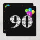 Bold black and white text on black background with colourful party balloons for 90th birthday party invite.