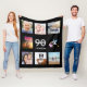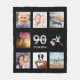 A gift for a woman's 90th birthday, celebrating her life with a collage of 8 of your photos. Templates for a name, age 90 and a date. Date of birth or the date of the anniversary. White and grey coloured letters. Black coloured background.