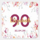 90th birthday pink magnolia flower frame on white square sticker