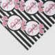 Classic slim black and white vertical stripes as background. With girly, feminine and romantic pink roses as decoration. Perfect for an elegant 90th birthday party for her. White and black frames with templates for name and age. Age number 90 in pink, name and date in black. The name is written with a hand-lettered style script.