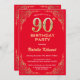 90th Birthday Red and Gold Glitter Frame Invitation