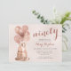 This beautiful 90th birthday party invitation featuring a 2-layer rose gold glitter cake with rose gold balloons, the number 90 in rose gold on blush would be perfect for celebrating your wife, sister, friend, mum, aunt, grandmother, great grandmother. It is traditional and classic while being fresh, modern and contemporary. The back is a lovely coordinating soft rose gold foil.