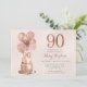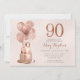 This beautiful 90th birthday party invitation featuring a 2-layer rose gold glitter cake with rose gold balloons, the number 90 in rose gold on blush would be perfect for celebrating your wife, sister, friend, mum, aunt, grandmother, great grandmother. It is traditional and classic while being fresh, modern and contemporary. The back is a lovely coordinating rose gold foil.