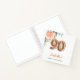 For an elegant and feminine 90th birthday party. A chic white background. Decorated with a rose gold and blush pink watercolored rose flower, floral, green eucalyptus leaves, sprigs, greenery and faux gold sprigs. Personalize and a name. Black and golden letters. The name is written with a modern hand lettered style script. Number 90 is written with a golden balloon style font. Can be used as a guest book or for planning the party.