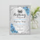 90th Birthday - Silver Stripes Icy Blue Roses Invitation