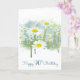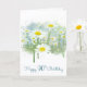 Close-up of white daisies in a country meadow with a watercolor abstract frame on white for a 90th birthday
